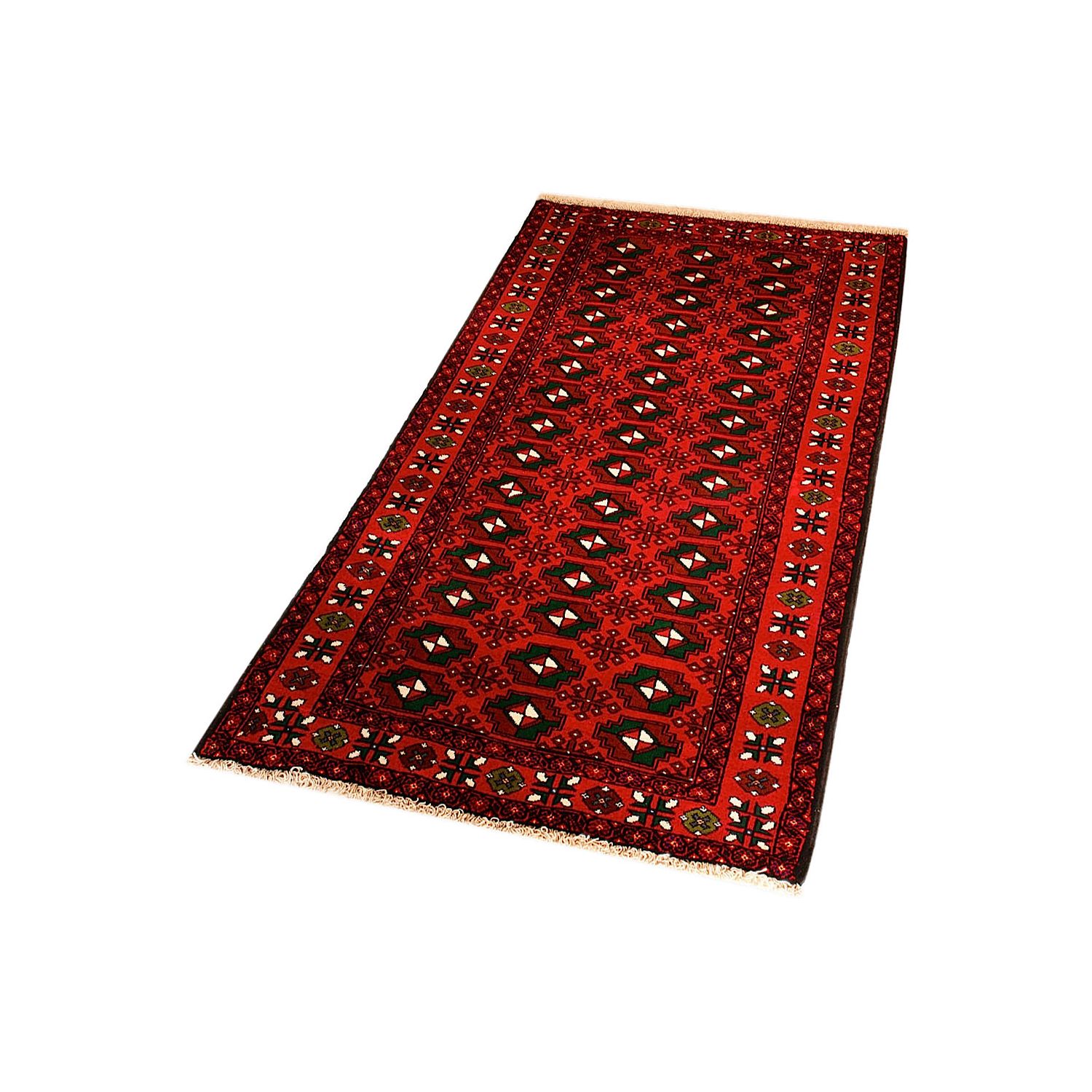 Baluch (or Baluchistan) is a region that includes the Baluchistan province in Pakistan as well as parts of Iran and Afghanistan. These very durable carpets are called Baluchi / Beluchi / Balochi since they are made in this border region; they are usually made of 100% wool and in small sizes, and feature dark red and brown colours and repetitive forms, usually the "gkiua" pattern.
